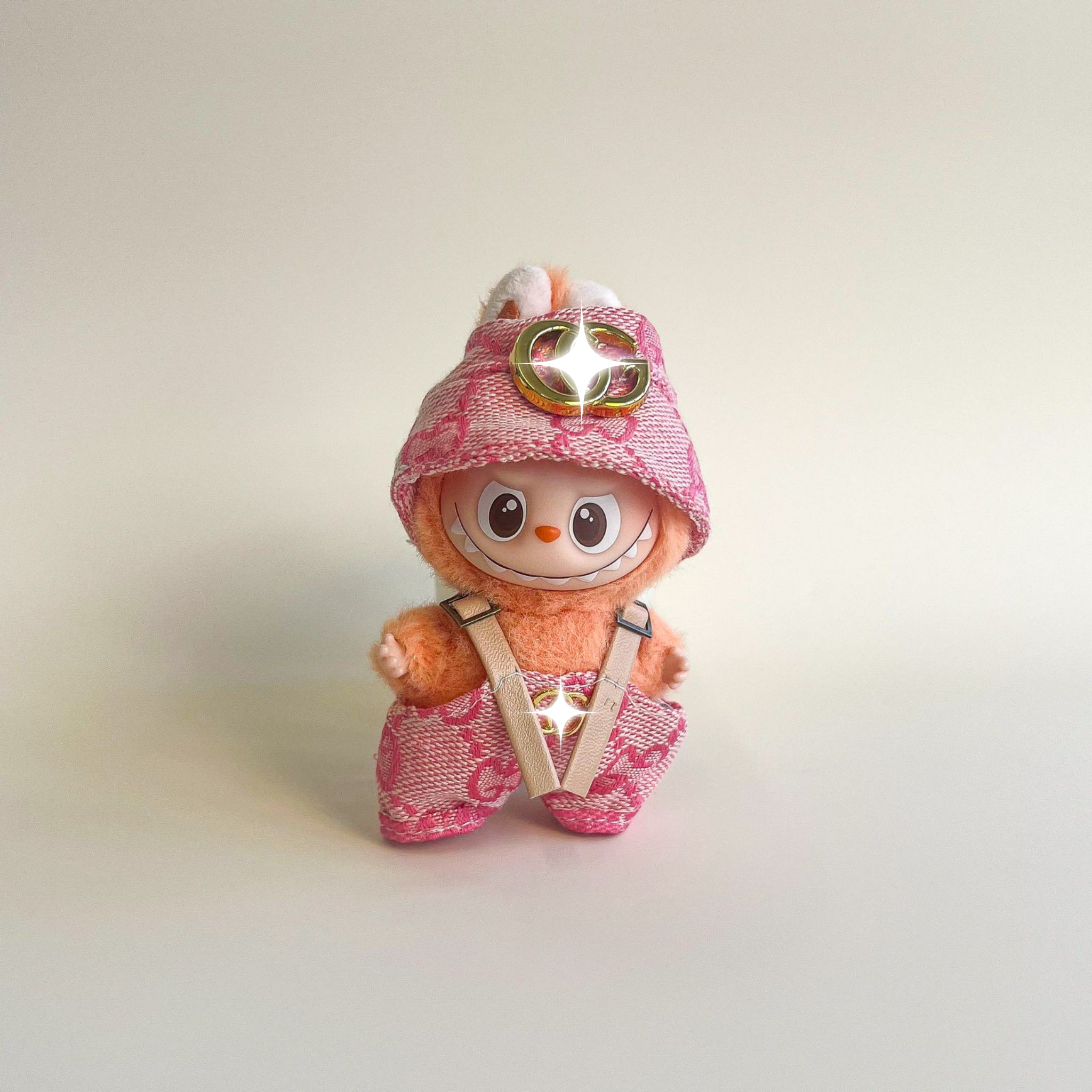 Labubu 4.0 Pink Monogram Denim Suspender Outfit