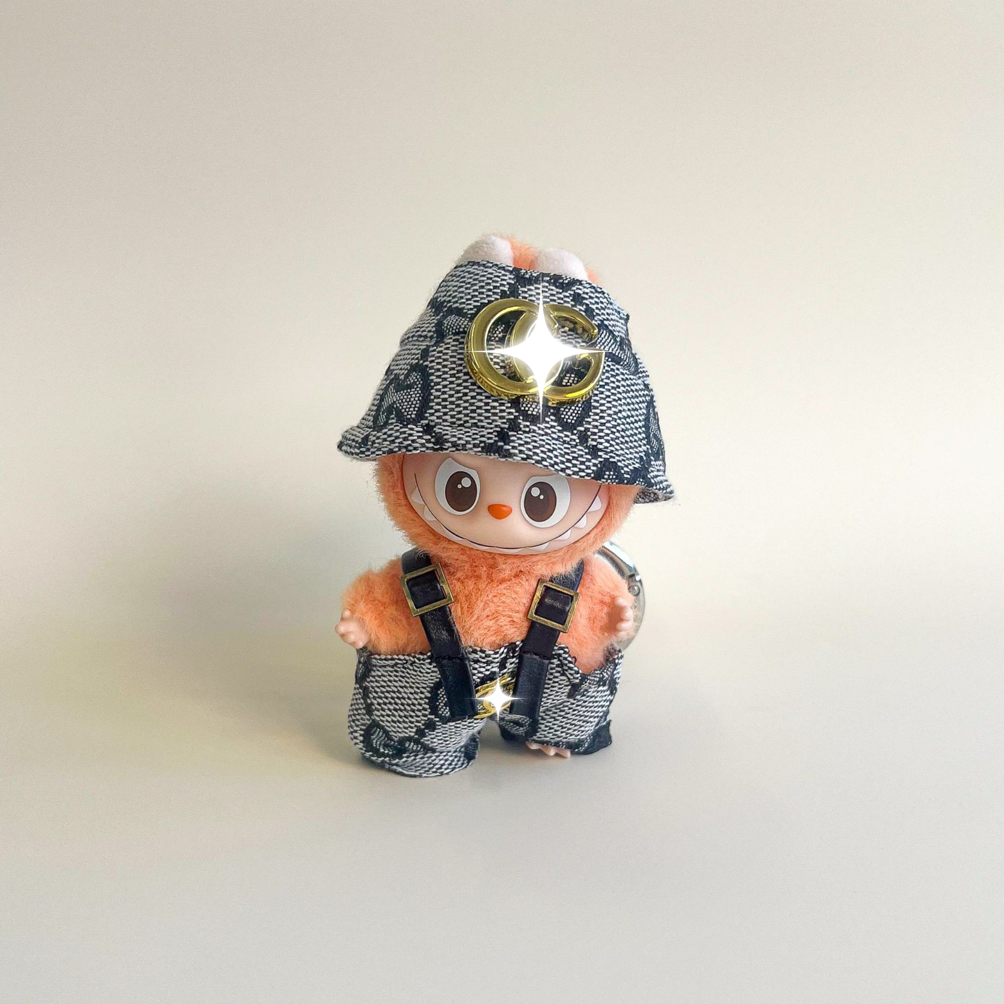 Labubu 4.0 Monogram Hat & Suspender Pants Outfit Set