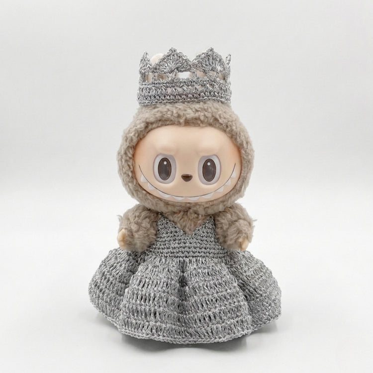 Labubu Metallic Silver Crochet Dress & Crown Set