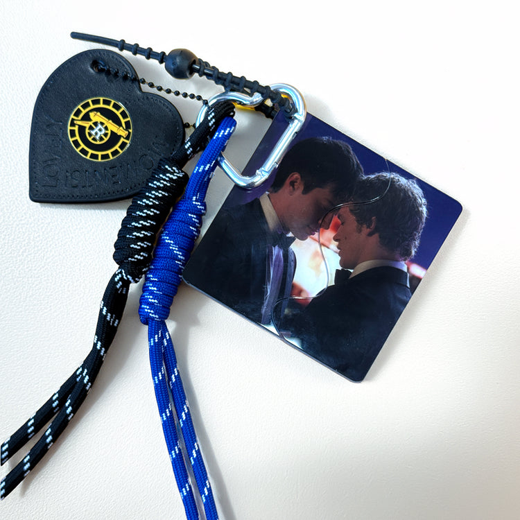 The main charm features a high-tension, formal tuxedo shot of Shane and Ilya—but with a smooth slide, the acrylic pieces part to reveal a hidden, intimate "locker room" moment. Complete with team-colored accents and a rugged build, it’s the ultimate "if you know, you know" piece for your collection.
