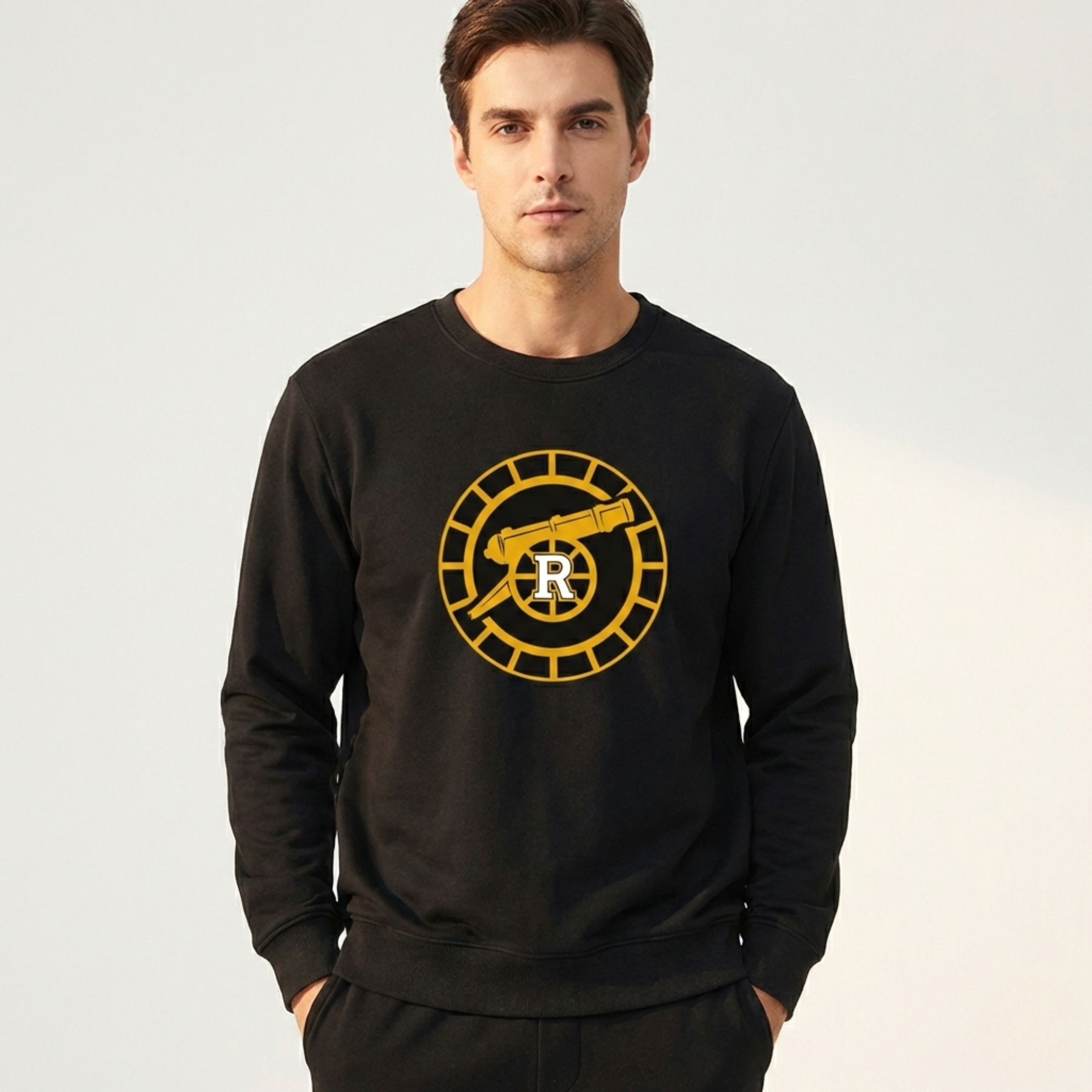 Stay warm while representing your favorite team with the Rozanov Boston Raiders Crewneck Sweatshirt. This classic black pullover offers a cozier alternative to the game-day jersey, featuring the bold golden cannon crest on the chest for a striking look. Perfect for casual wear, it combines fan loyalty with everyday comfort.